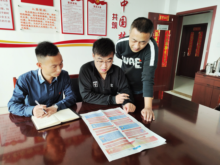 安徽省第十一次党代会胜利闭幕后,集团公司干部职工认真学习贯彻会议精神,立足岗位,同企业一起用实干为现代化美好安徽建设作出贡献。图为煤业公司谢桥矿党员职工正通过《淮河能源报》学习党代会精神。(胡涛涛 摄)