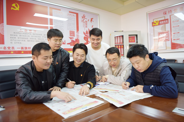 安徽省第十一次党代会召开后,煤业公司谢桥矿干部职工充分利用各种媒体平台学习宣贯会议精神,探讨绿色转型发展及新型综合能源基地建设,为建设美好安徽助力。图为该矿团干青年正在研学安徽省第十一次党代会精神。(彭涛)