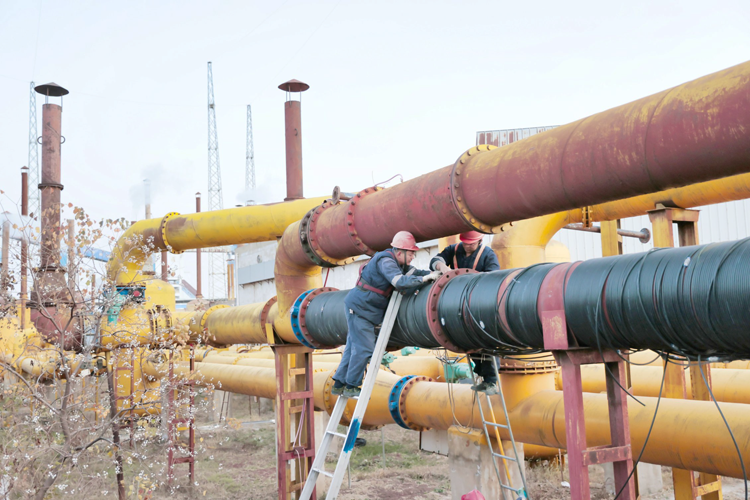 为防止冬季寒冷天气对安全生产造成影响,煤业公司朱集东矿科学制定防寒防冻预案,紧盯重点区域,为瓦斯管路穿上“保暖衣”,对瓦斯管路进行循环保温,筑牢冬季三防安全防线,确保岁末年初安全生产。图为该矿职工正在为瓦斯管路缠绕热水输送带。(苏雨 摄)