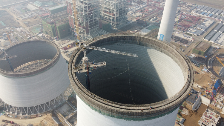 电力集团潘集电厂建设项目部始终坚持高目标引领,紧紧围绕总体工期“23+1”建设目标推进工程建设,统筹把控好安全、工期和质量,确保各项工作有力有序。 图为潘集电厂项目两座冷却塔施工建设现场。(孙飞 摄)
