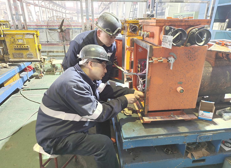 为全力确保年底前的安全生产,煤业公司谢桥矿日前开展了设备大检修活动,以“精、严、细、实”为总要求,加强机电设备的检查维护工作,严格杜绝不合格材料、设备投入使用,保证井下设备安全稳定运行。图为该矿机电修配中心职工正在对动力配电开关进行维修。(胡涛涛 摄)