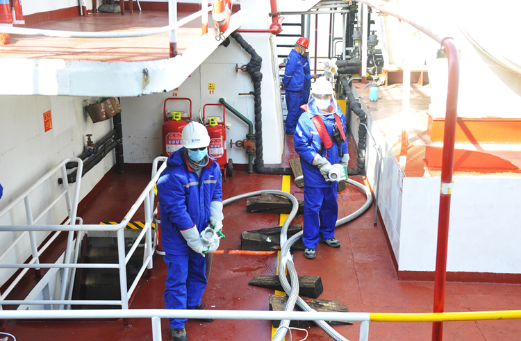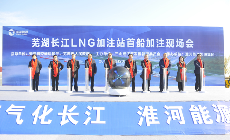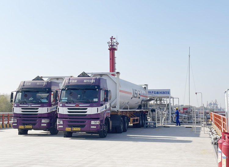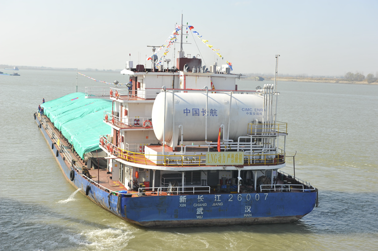 作业人员做好加注前的准备工作LNG动力船正在加注