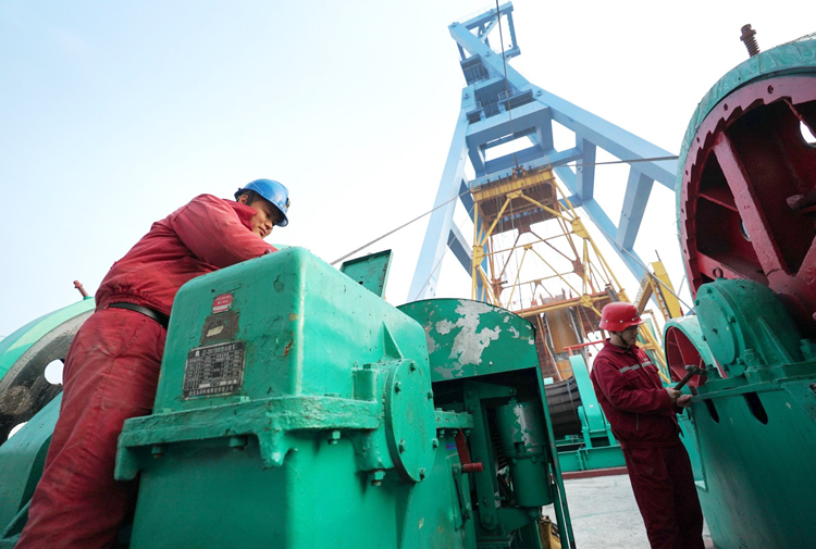 为确保矿井二水平项目建设有序推进,淮沪煤电公司丁集矿认真落实全国矿山安全生产工作会议精神和集团公司安全一号文相关要求,加大低温天气设备检查维护力度,及时排除安全隐患,为项目建设提供安全保障。图为该矿职工在二水平副井对凿井悬吊稳车减速箱内润滑油防冻情况进行检查。(潘冬 摄)