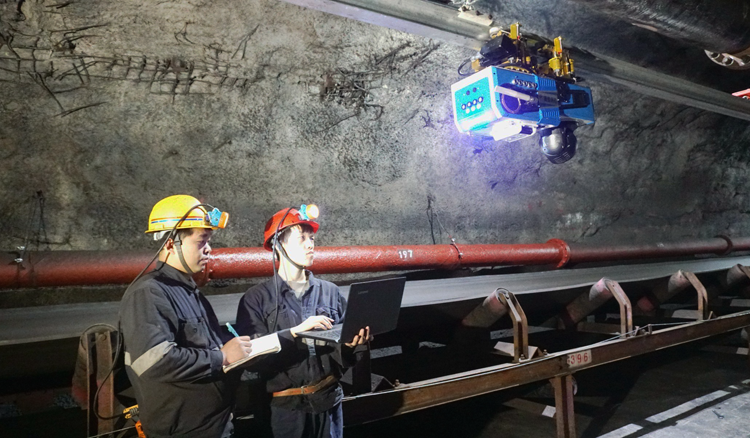 淮浙煤电公司顾北矿加大新设备投入力度,在煤流系统积极引进巡检机器人,以机器人技术辅助甚至代替人工作业,从而实现少人则安、无人则安。图为该矿工程技术人员正对北一煤胶带机石门的主运皮带机智能巡检机器人进行调试。(万新 摄)