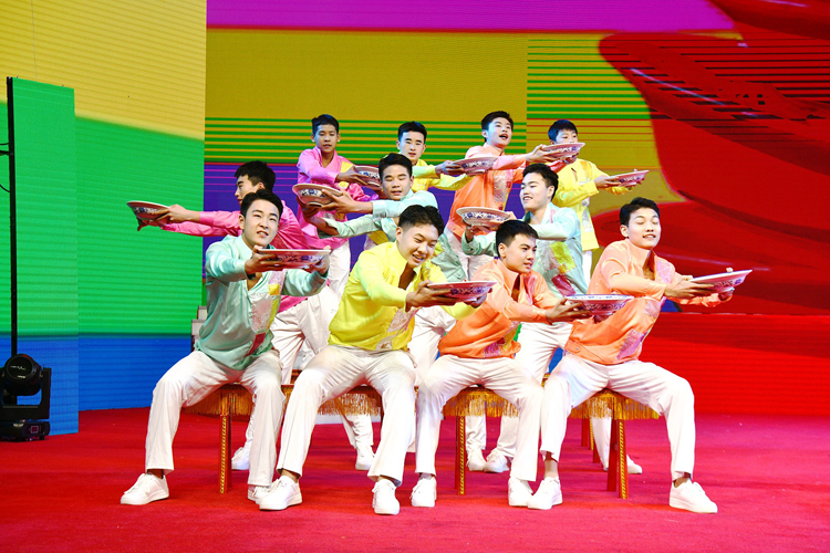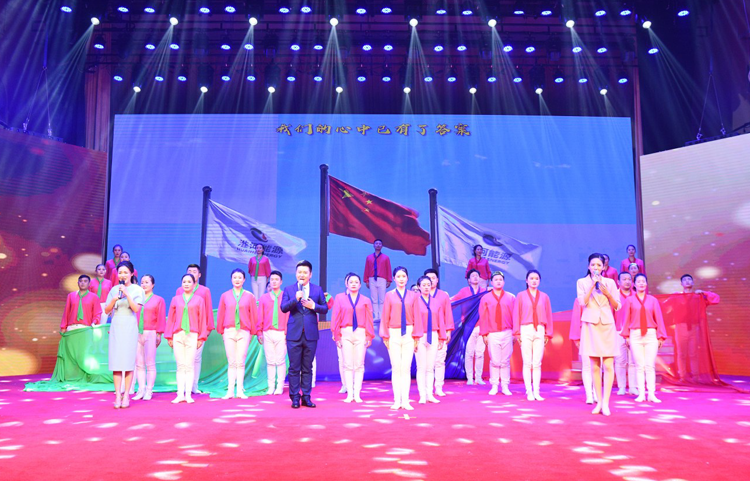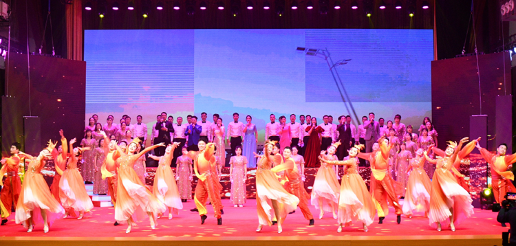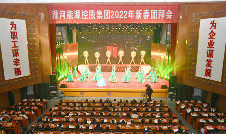 1月26日晚,淮河能源控股集团2022年新春团拜会举行。图为团拜会文艺演出现场。
