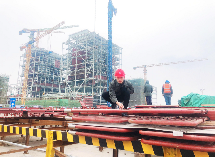 为高质量建设潘集电厂项目,坚持2022年底双机投产目标不动摇,电力集团潘集电厂项目部职工春节期间坚守岗位,全力以赴确保施工现场安全、质量、进度可控在控。图为该项目部职工正在检查项目关键设备。(姚峰 摄)