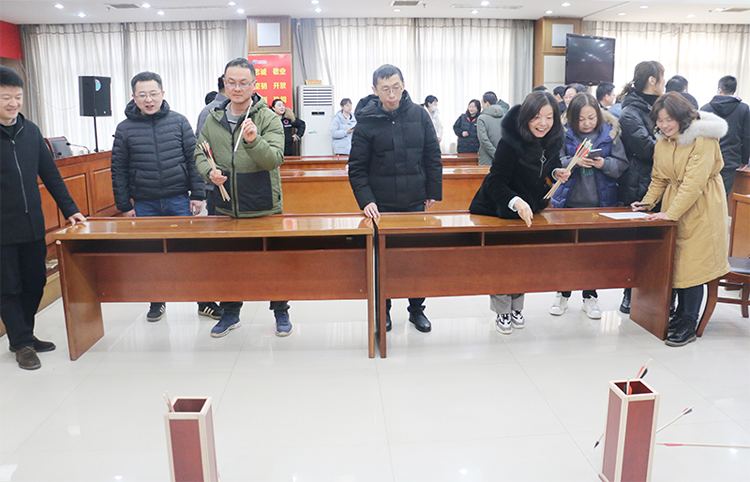 电力集团组织就地过年的职工开展投镖趣味活动,让他们过一个欢乐祥和年。