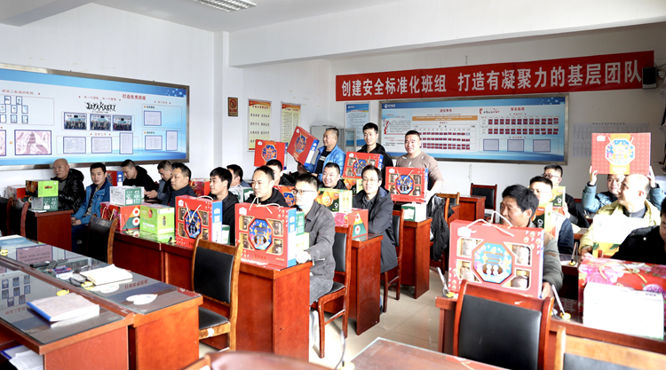 色连二矿班前为坚守岗位的职工送上新春礼包。
