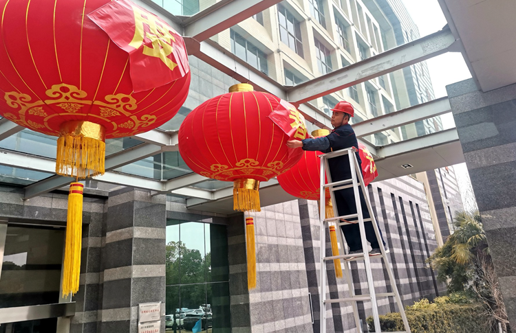 淮河能源股份铁运分公司贴春联,挂“福”字,祝福企业安全生产节节高。