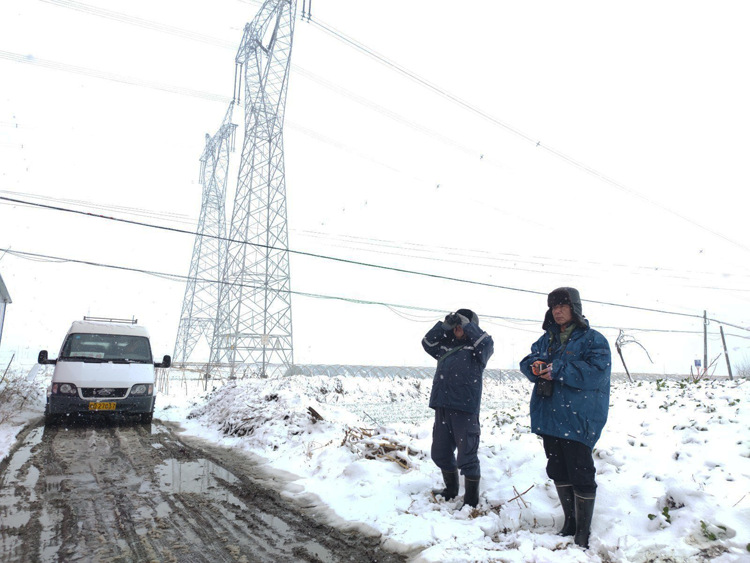 近日,春节后第一场大雪突至,造成部分供电线路结冰。煤业公司安装分公司线路工区立即行动,对矿区630公里高压输电线路进行巡线消缺,确保矿区雨雪季节安全用电。图为该工区职工对芦集变到丁集矿775线路进行巡线。(管茂林 摄)