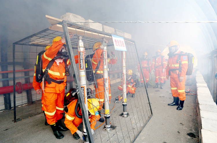 为持续筑牢安全生产防线,煤业公司救护大队开年就练兵,聚焦弱项补短板,抓好基本功训练,紧紧围绕“练为战”开展业务技能大练兵,通过开展装备实操演练,找出问题改进不足,不断提升攻坚制胜水平,为企业高质量发展贡献力量。图为演练现场救护队员使用液压组合式轻便支架,快速对危险顶板处进行支护。(周虎)