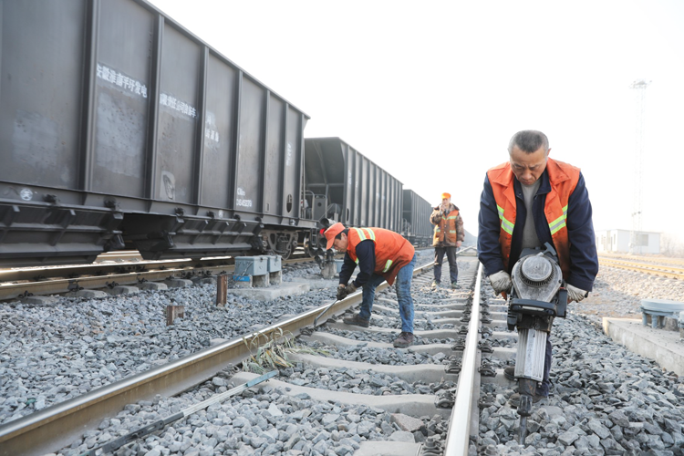 为认真落实集团公司安全一号文相关要求,全力确保一季度安全生产,淮河能源股份铁运分公司超前研判安全风险,关口前移、源头治理,全面加强设备检测监控和养修整治,确保矿区铁路运输畅通。图为该分公司线路工正在进行线路捣固作业。(苏健 摄)