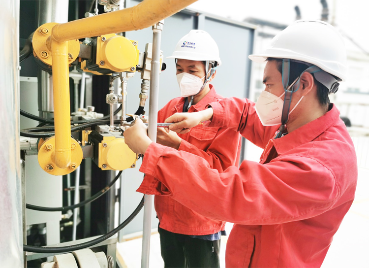 近期,为保障居民正常用气,煤层气公司积极克服困难,在抓好疫情防控的同时,全力保障煤层气加工设备平稳运行,保证安全供气。图为该公司潘集加工中心职工在检修煤层气加工设备。(孙静 陈丽 摄)