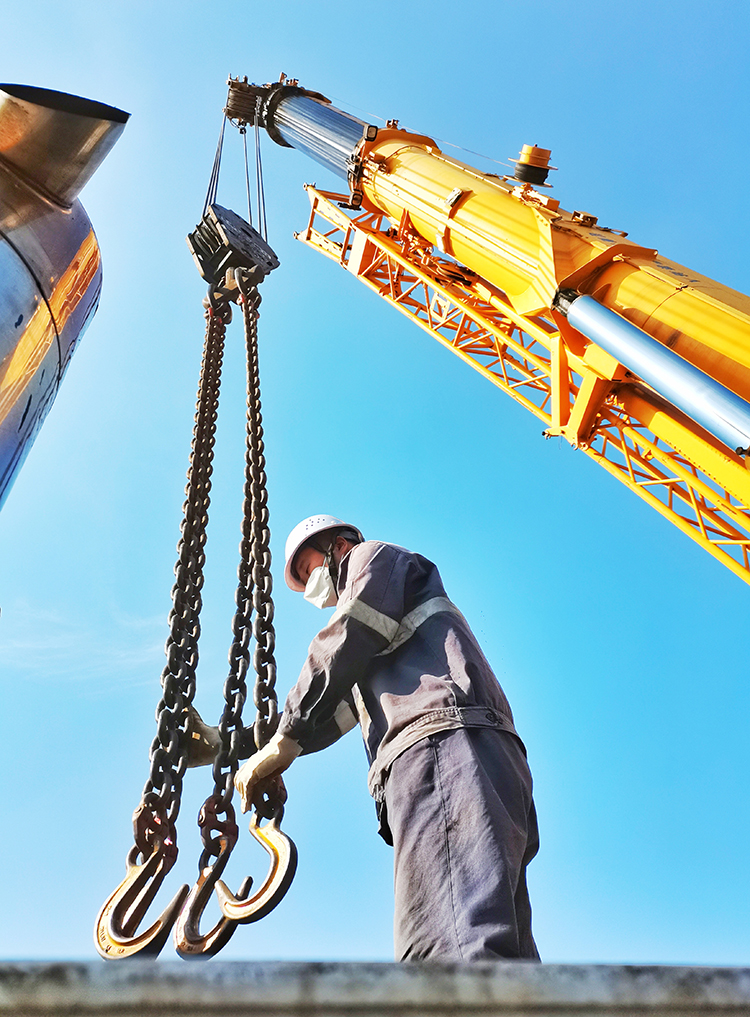 图为该公司职工正在做起吊前的检查。(王兴华 摄)