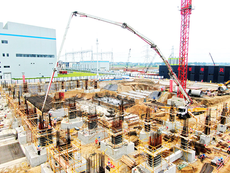 图为航拍#3主厂房基础D列8轴混凝土浇筑现场。(王雪琳 路鹏程)