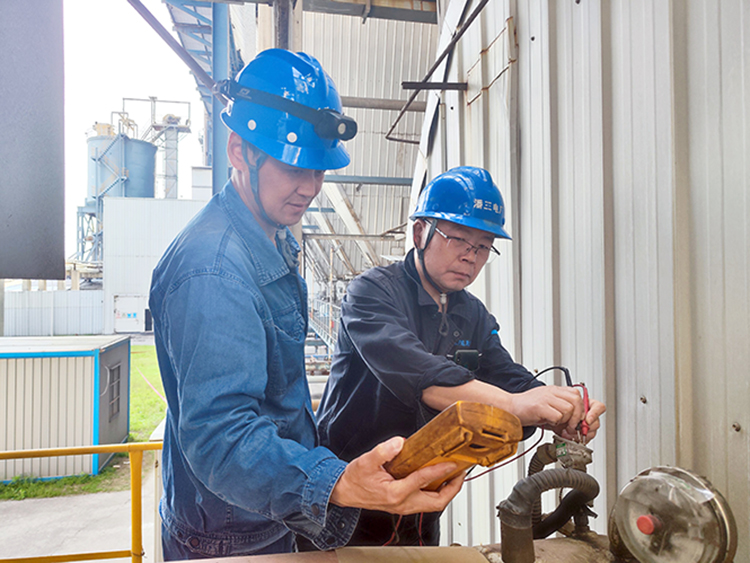 图为该厂检修人员正在进行引风机测点检查。(秦建华 郭孝静)