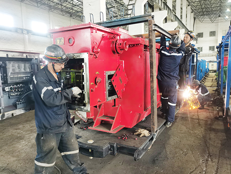 图为色连二矿安装准备队职工正在对备采工作面的设备列车进行维修和加工改造。(尹欣)