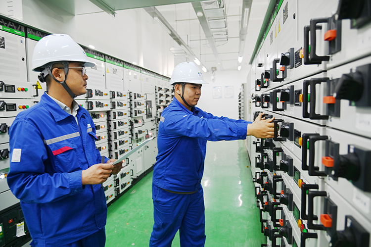 图为储罐项目部工程技术部技术人员进行电气倒闸操作。 (朱建华 谢睿 摄)