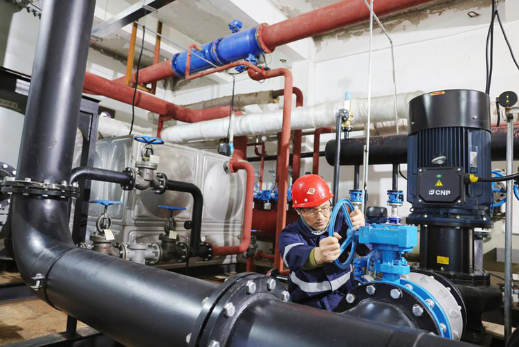 图为该矿保供队职工正在检修热交换系统。(赵鑫 摄)