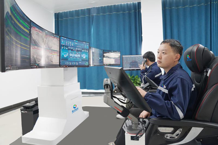 图为该矿职工正在操作本土煤矿首个投入使用的采煤工作面智能化主控系统“太空岛”。 (胡青松 肖谦 摄)