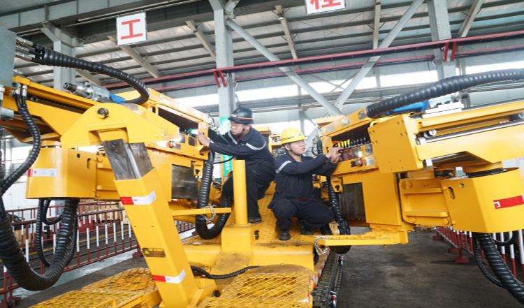 图为该矿综机工区职工对锚杆钻车进行维修。