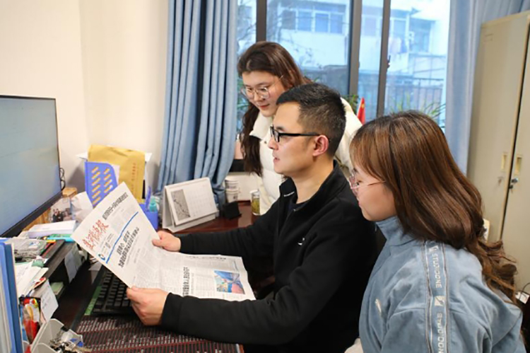 ▲勘探公司机关部门职工利用《淮河能源报》学习领悟集团公司党委工作会议和“两会”精神。