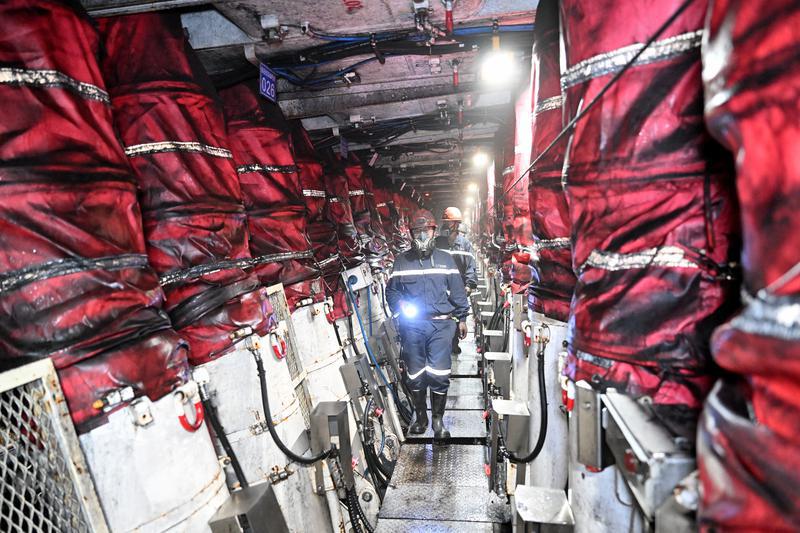 西部煤电集团唐家会矿坚持以“六效”为牵引,高目标打造“六全”智慧示范矿井,推深做实61305智能化综放工作面建设,助力提升现场安全系数、提高井下生产效率、降低职工劳动强度。 图为该矿工作人员检查智能化工作面生产情况。(苏旻 摄)