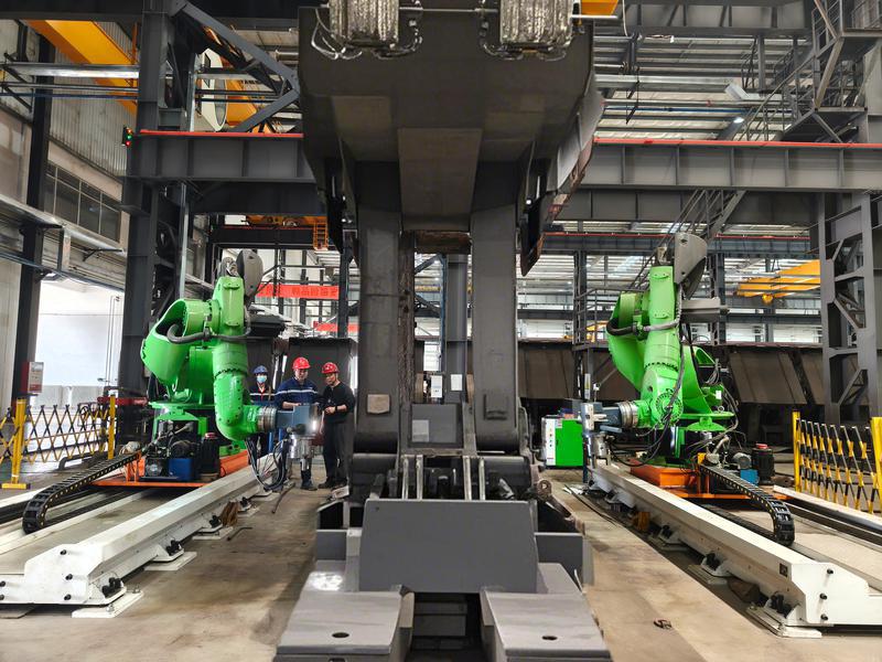 设备租赁公司牢固树立“数智+”思维,发挥“四个替代”效应,大力推进智能化设备广泛应用。该公司以智能化设备替代人工操作,有效降低人力成本,提高安全系数和工作效率。图为该公司职工利用液压支架装拆辅助机器人安装支架。 (王艺 摄)
