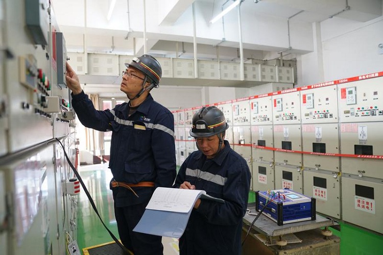 淮沪煤电公司丁集矿认真落实集团公司安全生产相关要求,提前做好雨季“三防”工作,组织人员对井上井下机电设备进行全面排查,及时消除隐患,确保供电系统稳定、设备正常运转。 图为该矿保供工区职工在对110kV变电所高压开关进行检修。(胡锦 摄)