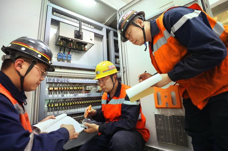 西部煤电集团色连二矿认真贯彻落实集团公司《关于强化“五一”假期安全管理工作的通知》要求,加大重点设备巡查、检修力度,确保节日期间设备安全稳定有效运行,为矿井安全生产提供有力保障。 图为色连二矿机运队职工正在副井宽窄罐电控柜内测量继电器电阻。(郑雅萍 摄)