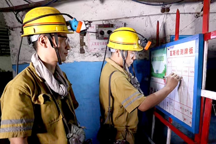 潘三矿严格现场瓦斯管理,在细化量化瓦斯治理措施上,提高瓦斯治理针对性,确保矿井安全生产。图为潘三矿通风区测气员检查回风巷道瓦斯情况并填写记录牌板。 (周勇 摄)