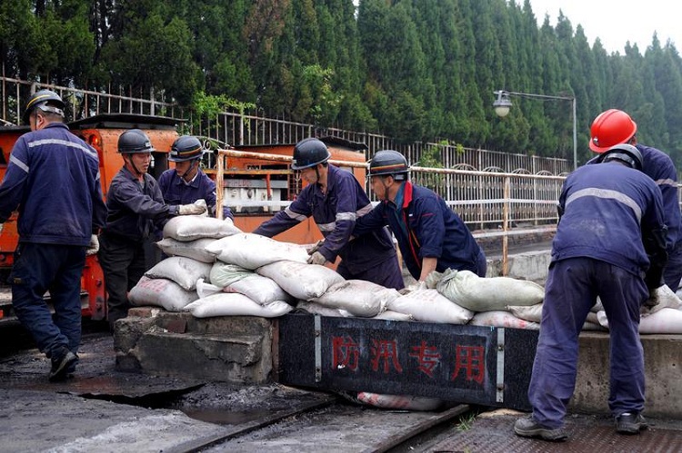 淮浙煤电公司顾北矿认真落实集团公司雨季“三防”工作要求,以地面防汛应急演练为契机,进一步增强干部职工防汛意识,强化各部门协调配合,切实提高应急抢险处置能力,确保矿井安全度汛。 图为顾北矿参加演练人员正在副井翻罐笼入口处模拟搭设防洪沙袋,砌筑防洪墙。 (孟珂 摄)