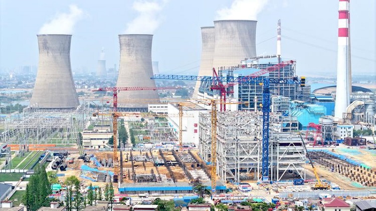 图为洛河电厂四期项目主厂房建设现场。