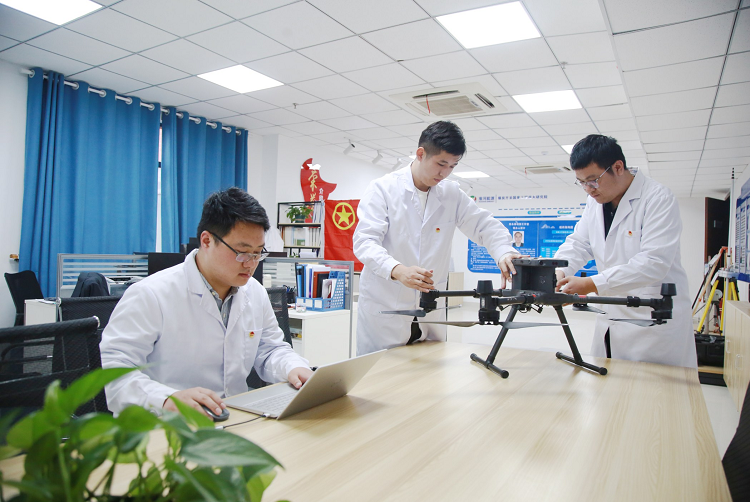 图为生态实验室科研人员正对无人机数据进行收集整理。