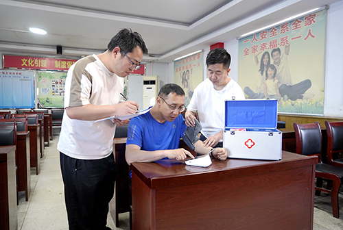 为进一步强化不安全人管控,谢桥矿要求各基层党支部通过班前会,采取“一看、二问、三查”法,认真对照不安全人台账,对当班不安全人逐一排查,做好记录。重点观察了解职工精神状态,通过班前测血压、量体温、查重点人,对有心血管病史的人员做好登记,重点管控。图为谢桥矿保供工区党支部正在为职工测量血压。 王卓 摄