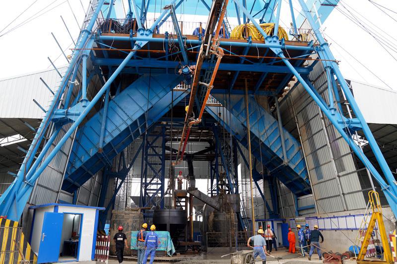入夏以来,淮浙煤电公司顾北矿紧盯安全改建及二水平延深工程建设目标,严把“安全、质量、进度、投资”四控制,按照总体工期节点要求蹄疾步稳推动项目建设。图为掘砌工程施工人员对井筒第十一模进行混凝土浇筑。洪家杰 谢雨璇 摄