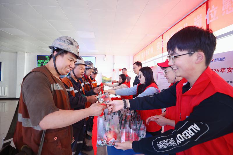 图为色连二矿在井口开展慰问活动,为职工送上粽子等慰问品。