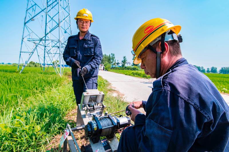 图为安装公司组织职工对潘集地区矿区高压线路进行隐患排查。