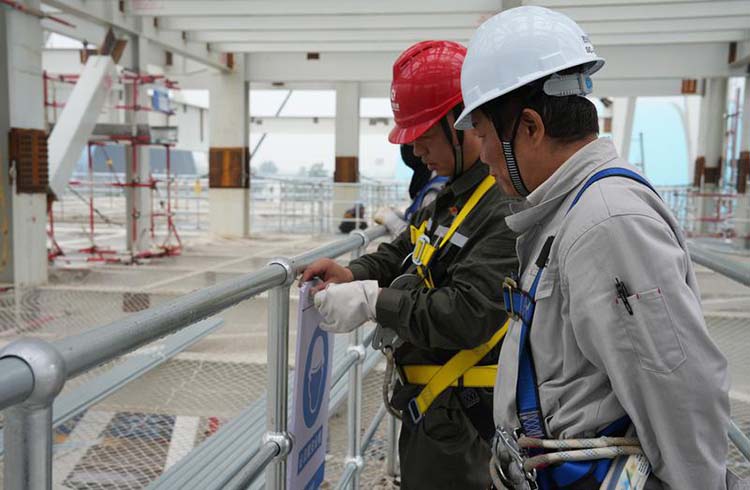图为洛河电厂四期项目部管理人员在锅炉钢结构安装现场进行安全质量检查。
