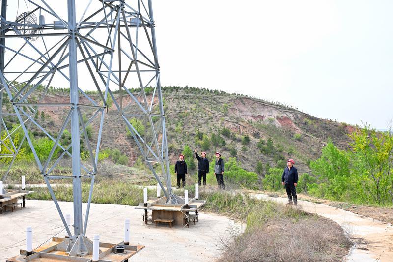 西部煤电集团唐家会矿认真落实集团公司雨季“三防”相关工作要求,组织人员加强对排水管路、供电线路、防雷电设备的检查,确保设备设施完好。图为唐家会矿维修人员对矿区110kV供电线路进行巡查。 孙博 摄