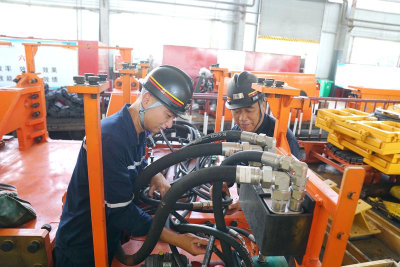 为进一步夯实安全基础管理,淮沪煤电公司丁集矿严格按照集团公司相关工作要求,积极做好设备消缺、隐患治理工作,持续强化设备检修,及时消除设备安全隐患,保障矿井安全生产。 图为丁集矿综机工区职工正在检修综掘机液压系统管路。 胡锦 摄