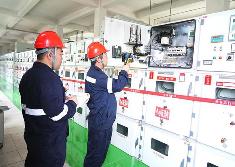 为确保矿井用电设备安全稳定运行,张集矿强化供电系统管理,加大供电设备巡检力度,安排专人进行检修维护,保障矿井安全供电。图为张集矿供电一队检修人员在检查6kV变电高压开关柜。(吴家群 摄)