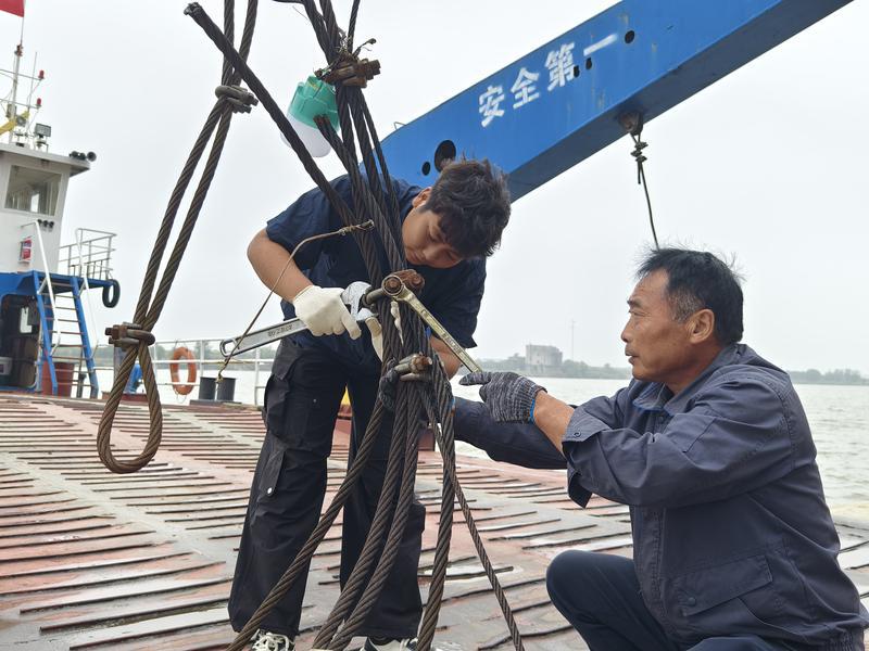 健康产业集团全力推动“六位一体”安全支撑体系落地,进一步完善渡口渡船设备设施,加强人员培训,针对性开展安全检查,确保渡运安全。图为健康产业集团生态农业公司二道河渡船工作人员在紧固主甲板钢丝绳。 孙力 摄