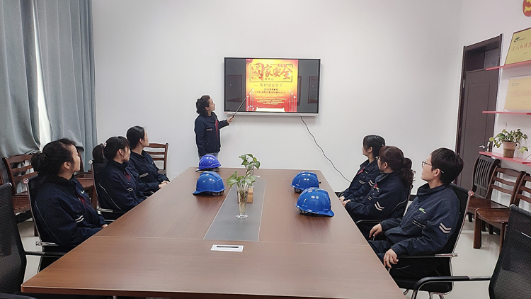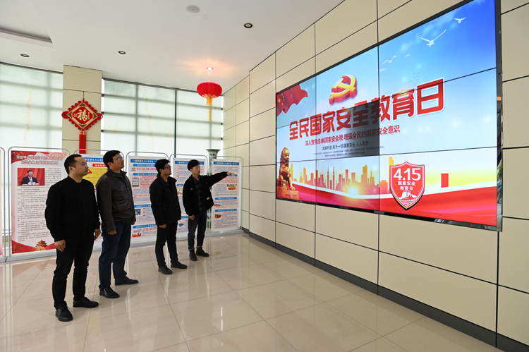 今年4月15日是第6个全民国家安全教育日。为提高职工国家安全法治意识,煤业公司选煤分公司利用网站、公众号、宣传栏、班前会等多种形式开展宣传教育活动。图为该分公司技术检查中心当班职工宣传教育活动现场。