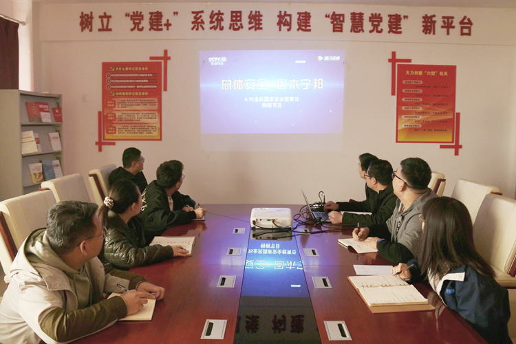 2021年4月15日是第六个全民国家安全教育日,西部公司唐家会矿积极开展全民国家安全教育活动,组织职工观看国家安全教育视频,认真学习国家安全的定义、国家安全问题研究的发展历程、国家安全体系等内容,引导职工践行总体国家安全观,提高国家安全法治意识,营造国家安全的良好氛围。图为唐家会矿组织党群工作部、纪委工作部,人力资源部(人事部)职工观看《全民国家安全教育日》特别节目。