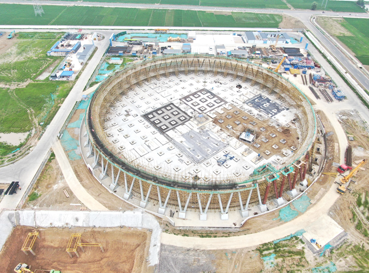 潘集电厂项目部深入贯彻落实集团公司庆祝中国共产党成立100周年暨创先争优表彰会议精神,以争创国优金奖为目标,坚持“安、快、好、省”推进项目高质量发展。图为潘集电厂项目1号冷却塔施工现场,该冷却塔共96根人字柱,现已浇筑完成88根,水池底板已浇筑完成3块。(姚峰 摄)