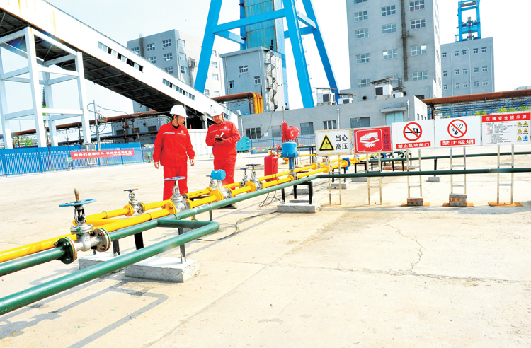 为深刻吸取近期行业兄弟单位发生的安全生产事故教训,日前,煤层气公司对瓦斯发电管理中心、井场工作场所等开展多层面的安全检查活动,重点对设备起吊、拆除、高空作业、烧焊等方面加强安全隐患排查和现场监督,防范各类安全事故发生。图为在潘谢2号试验井井场,工作人员正在对井场范围内的安全设备设施进行检查。(魏强 摄)