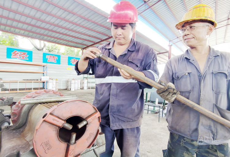 煤业公司潘二矿认真贯彻落实集团公司上半年经营分析视频会精神,坚持全面从严从紧,积极落实低成本战略,降成本,增效益,大力开展物资回收复用工作。图为该矿物资管理科职工正在对自制加工的锚注管进行验收。(谢睿)