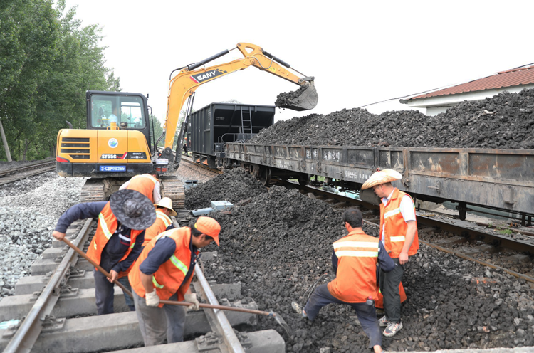 为积极应对夏季高温多雨天气影响,淮河能源股份铁运分公司加大铁路线路病害整治工作,确保运输安全。图为该分公司职工在加固线路基础。(苏健)