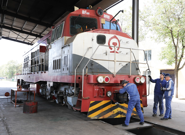 为消除潘谢矿区铁路机车运行隐患,保障发运安全,淮河能源股份铁运分公司制定详实的方案、措施,对所属内燃机车加强检修、保养,进一步提高机车运行质量,确保发运安全。图为该分公司机务段检修人员正在对机车部件进行检修保养。(秦建华 苏健)